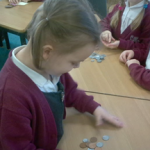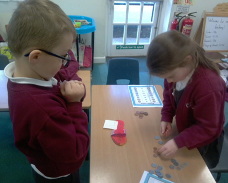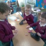 We measured our own shoes, and then designed and created our own Cinderella’s glass slipper! We used a range of objects to measure, including counters, glue sticks and rulers! We then set up our classroom as a shoe shop, where we used our knowledge of money to sell and buy our shoes!