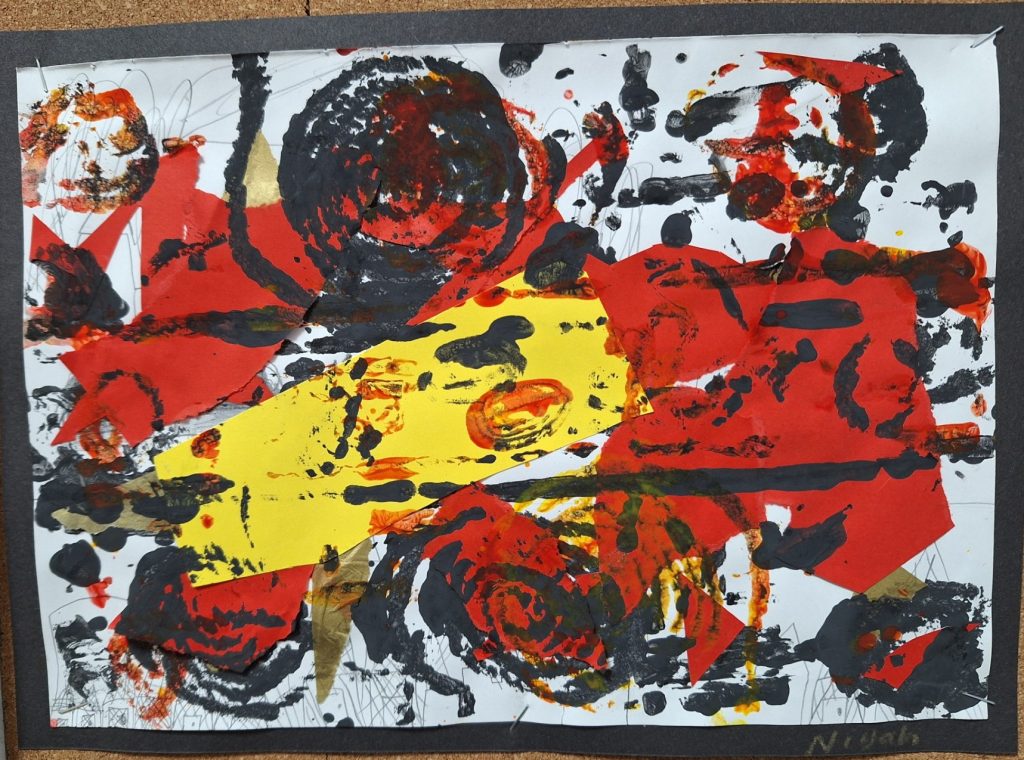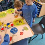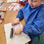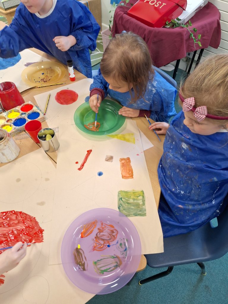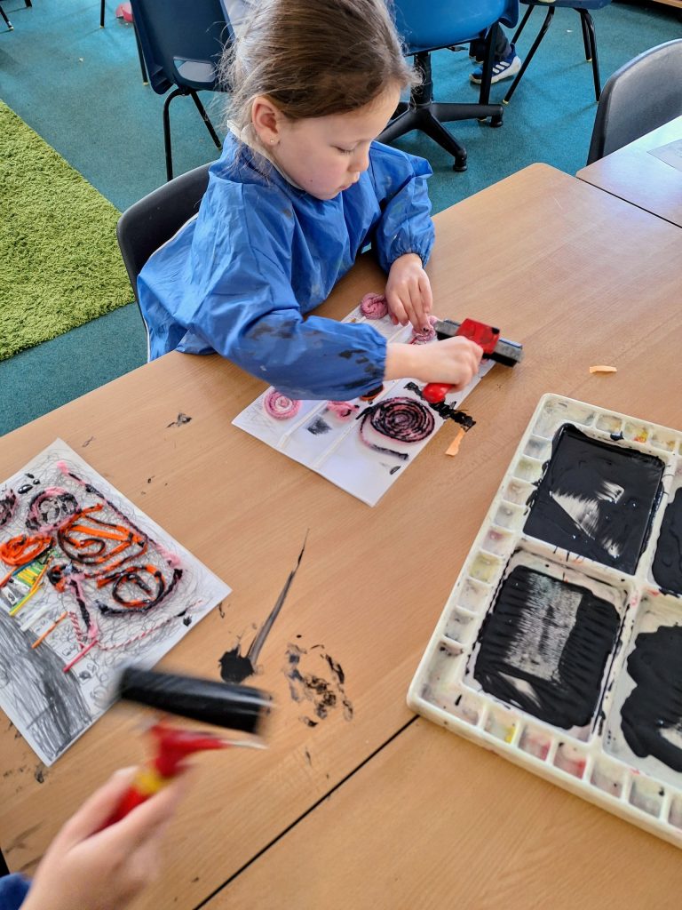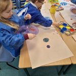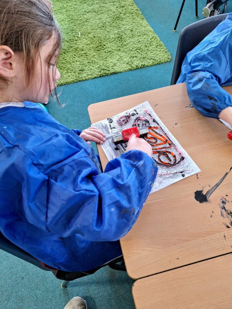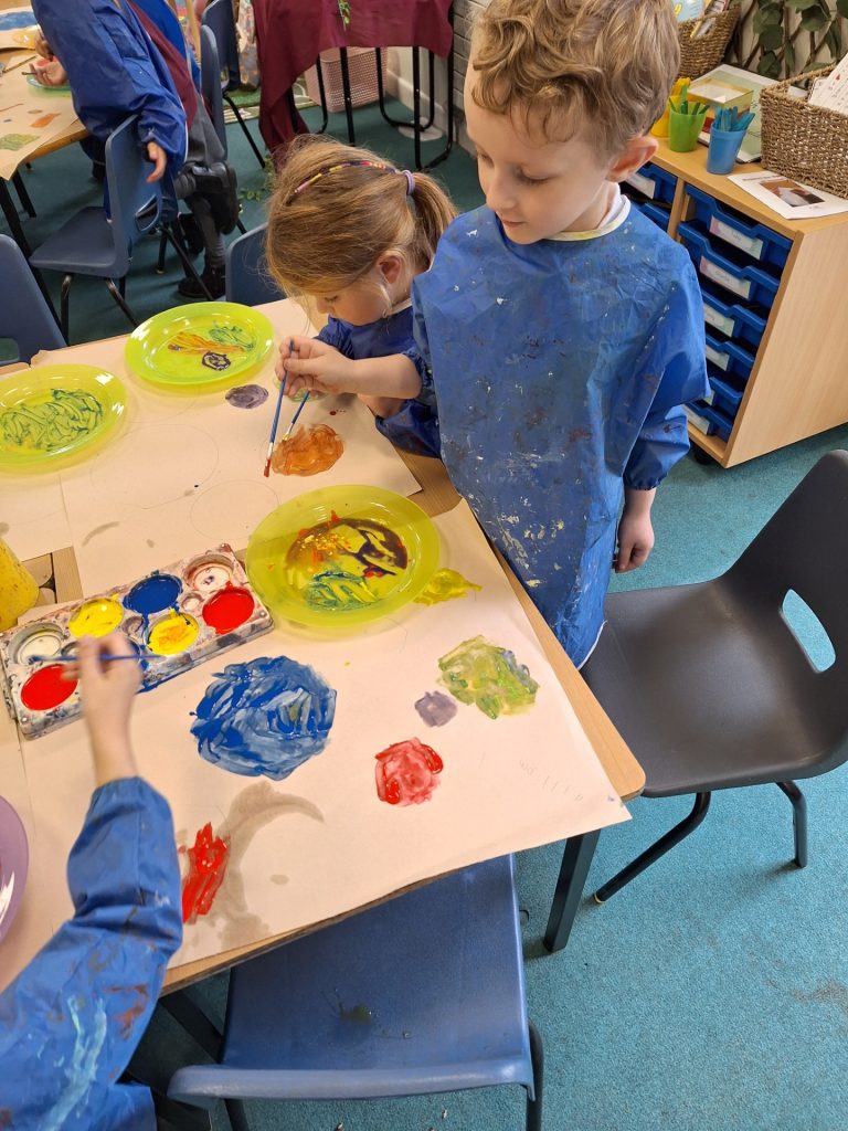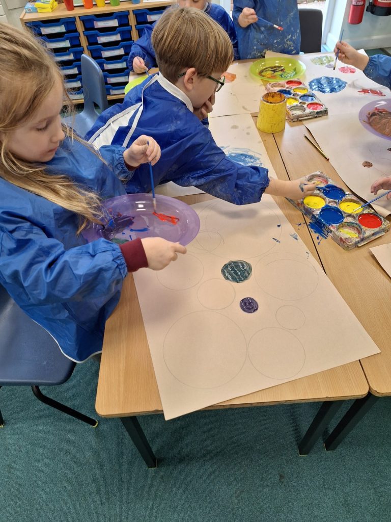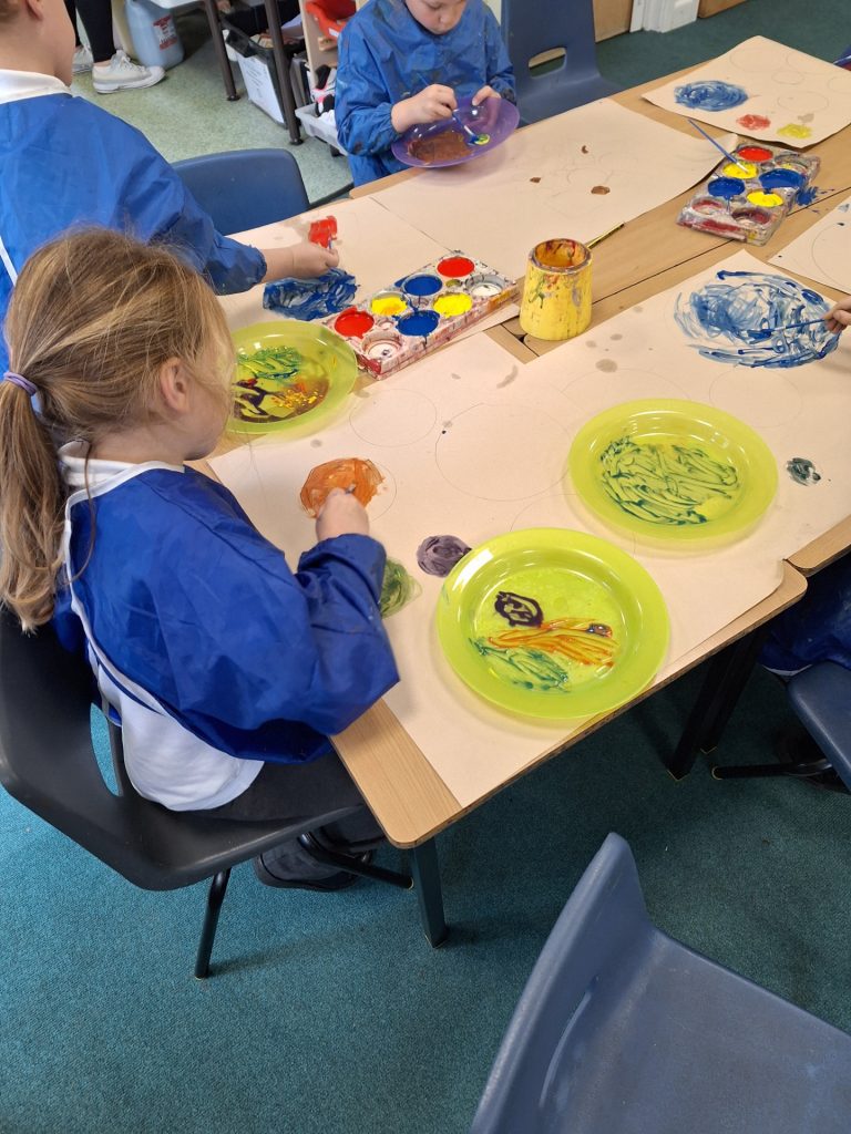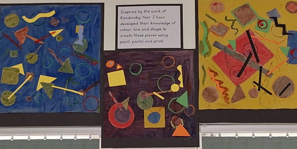 We have been busy colour mixing in art. Inspired by the work of Kandinsky, we have used our colour knowledge to use lines and shapes to recreate his work. Year 2s have moved on to used tertiary colours as well as primary and secondary. We also used our knowledge of printing to create some of the lines and shapes.